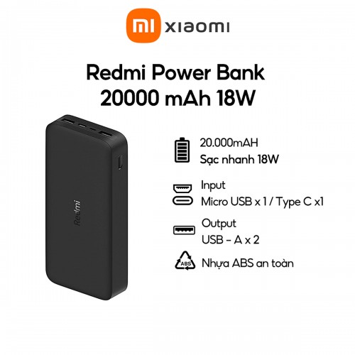 Pin Sạc Dự Phòng Xiaomi Redmi In Hỗ Trợ Sạc Nhanh 18W [tin mẫu]