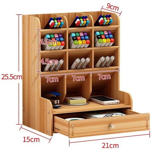 Sản phẩm được thiết kế chuyên dụng để đựng văn phòng phẩm, đồ dùng học tập như: Bút thước, bộ màu vẽ, con dấu, bấm Được chia nhiều ngăn riêng biệt giúp bạn có thể dễ dàng chia cất giữ đồ đạc để tiện khi sử dụng mà không mất nhiều công tìm kiếm như trước. Đặc biệt có thể sử dụng ở các lớp học vẽ, trang điểm, hóa trang để phân loại các bảng màu, đồ make up, đồ phụ kiện nhỏ dễ thất lạ Sản phẩm bằng chất liệu gỗ ép, bền chắc dễ lắp ghép có 3 màu sắc cho bạn lựa chọn theo sở thích: đen - kem - nâu gỗ.