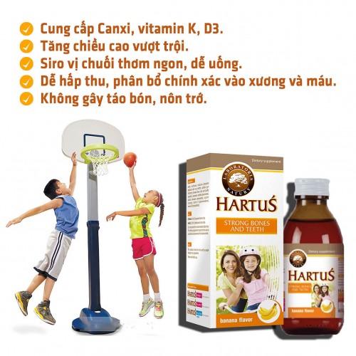 - Canxi sinh học Hartus là sự kết hợp hoàn hảo với sữa mẹ cho sự phát triển chiều cao của bé. Bạn sẽ luôn yên tâm về lượng canxi, vitamin K, vitamin D3 để đảm bảo cho bé tăng trưởng gấp rưỡi sau mỗi năm (từ 0-3 tuổi). Qua đó giúp mẹ yên tâm để bé có thể đạt đến chiều cao tối đa theo gen trong độ tuổi dậy thì