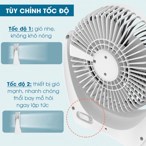 Quạt mini để bàn được thiết kế tiếng ồn cực kỳ thấp. Để nó trên bàn, bạn vẫn có thể học tập, làm việc mà không bị quấy rầy, thoải mái và yên tĩnh. Hoặc bạn có thể đặt ở giường của bé.