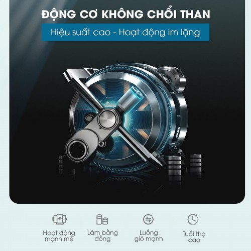 Động cơ không chổi than, gió mạnh yên tĩnh: cung cấp luồng gió mạnh, lâu dài- độ bền cao, êm hơn, tuổi thọ cao hơn